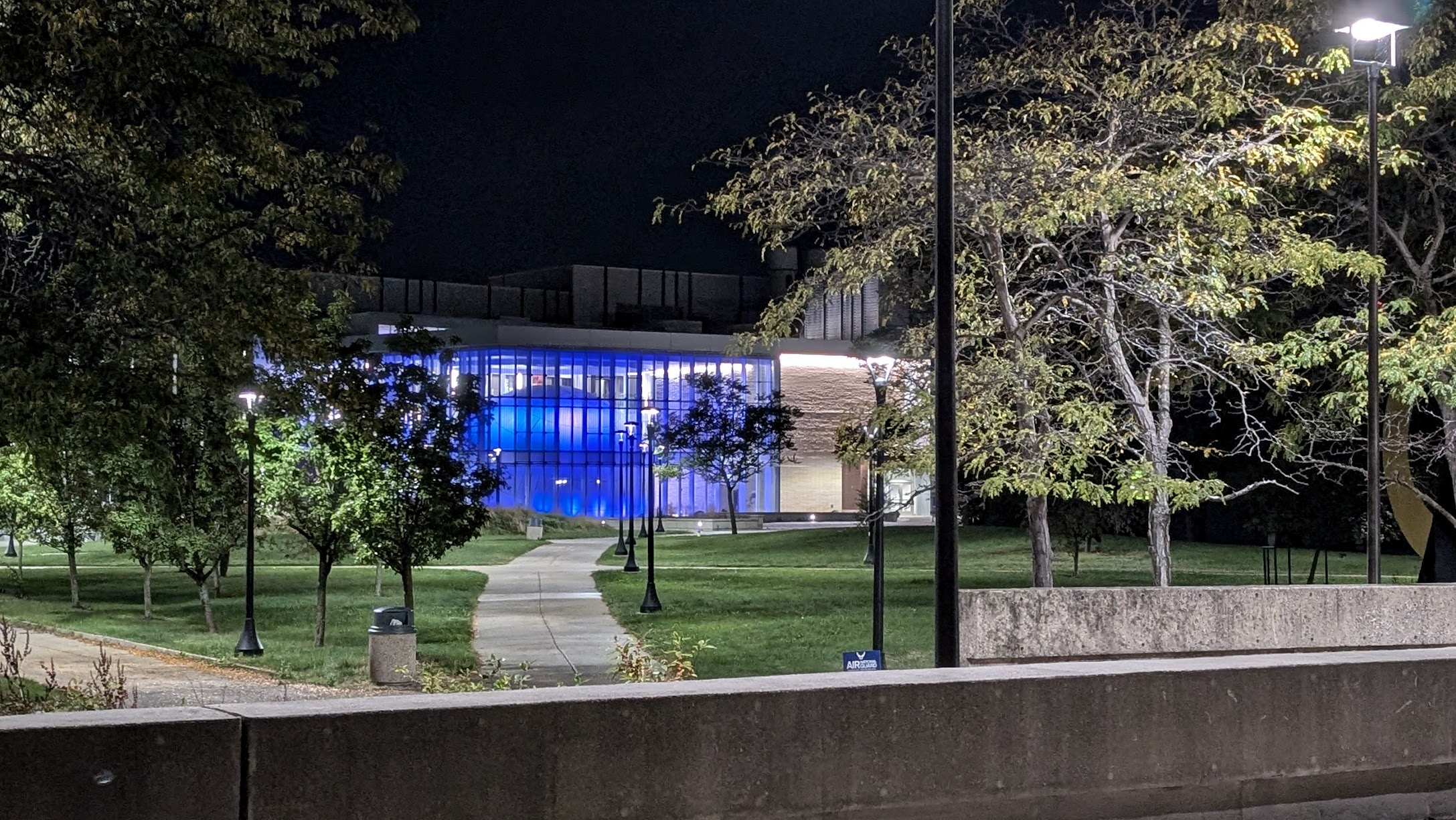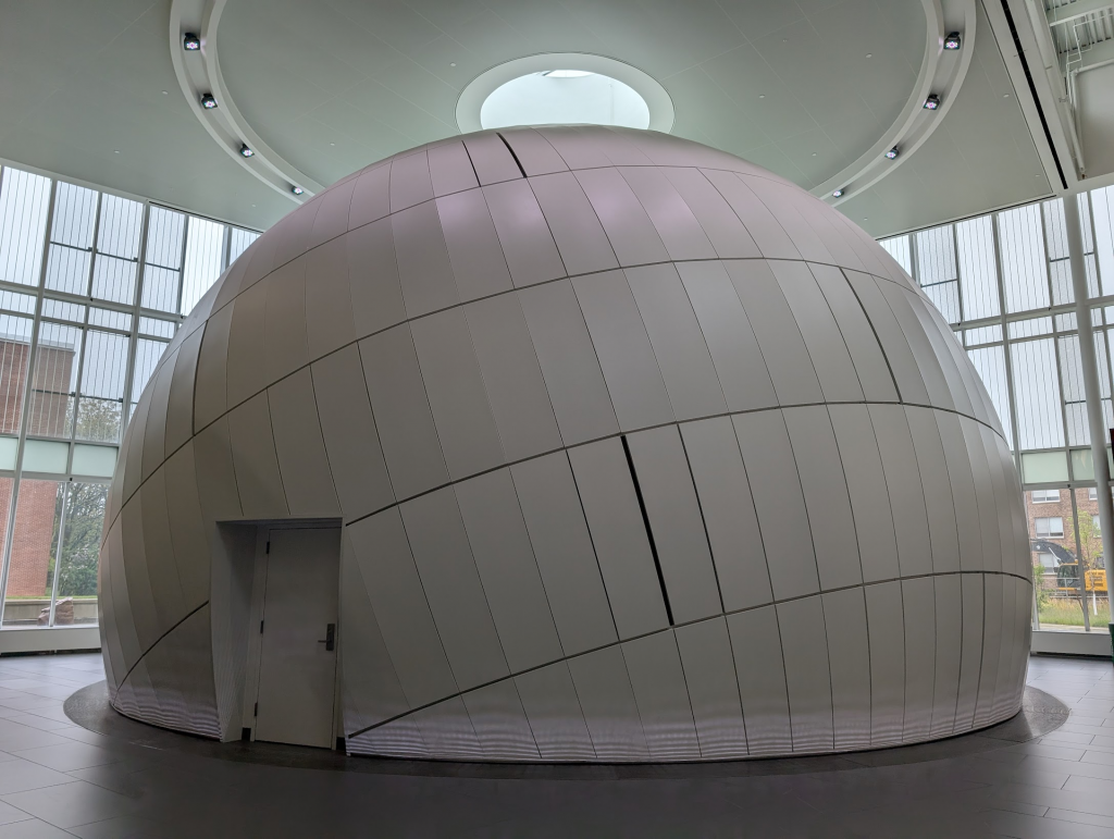 The Ferguson Whitworth Planetarium next to Upton Hall. Design students use this space regularly when creating immersive media in their animation classes.