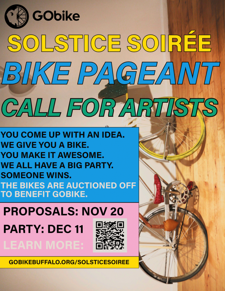 Go bike is looking for artists to help with their fundraiser. Come up with something fun and creative to do to a bike. Have a party.