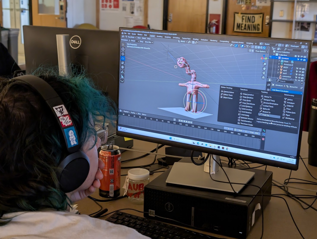 Photo of student, Aubs, making a thing. The image is unrelated to this page, but we don’t know how to remove it.